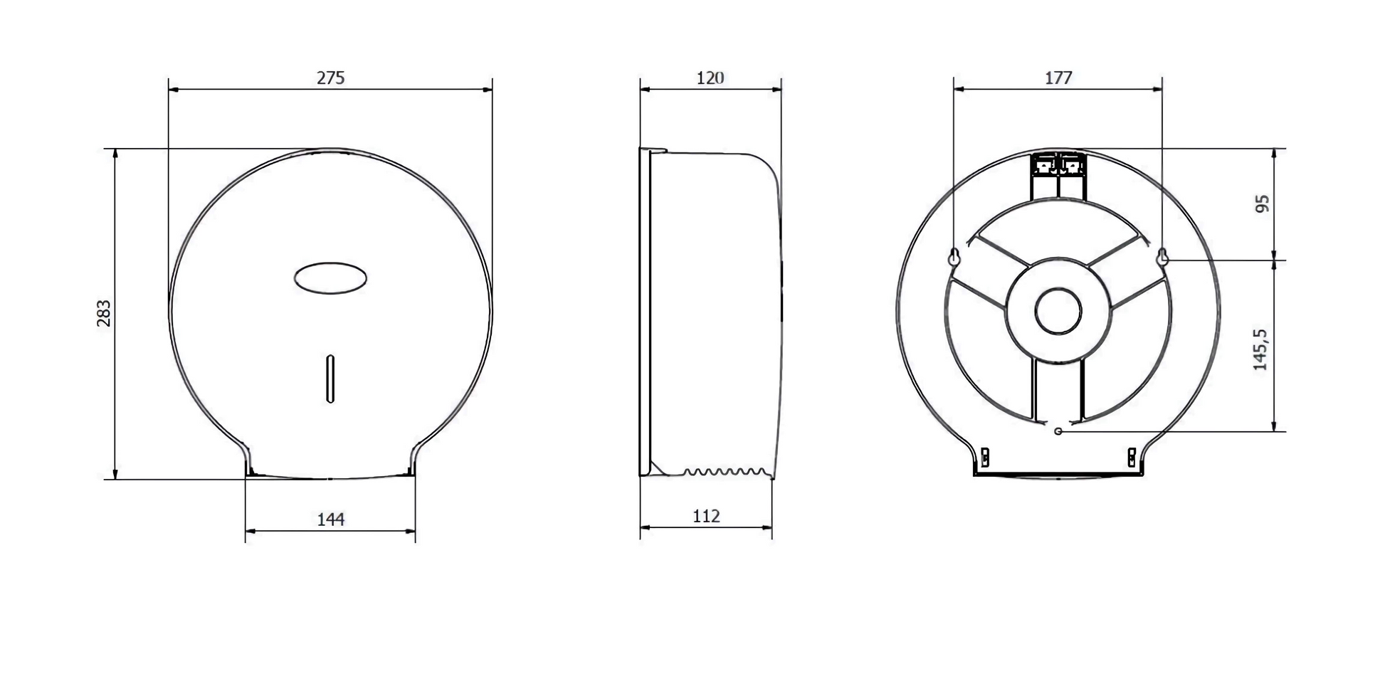Este modelo conta com fechadura de segurança e visor frontal transparente, que permite o controlo visual do nível do papel, facilitando o reabastecimento e evitando surpresas durante o uso. Compatível com rolos jumbo de até 300 metros (com diâmetro máximo de 220 mm e mandril de 45 mm), o Dispensador Deluxe garante autonomia e eficiência, reduzindo a frequência de reposições.